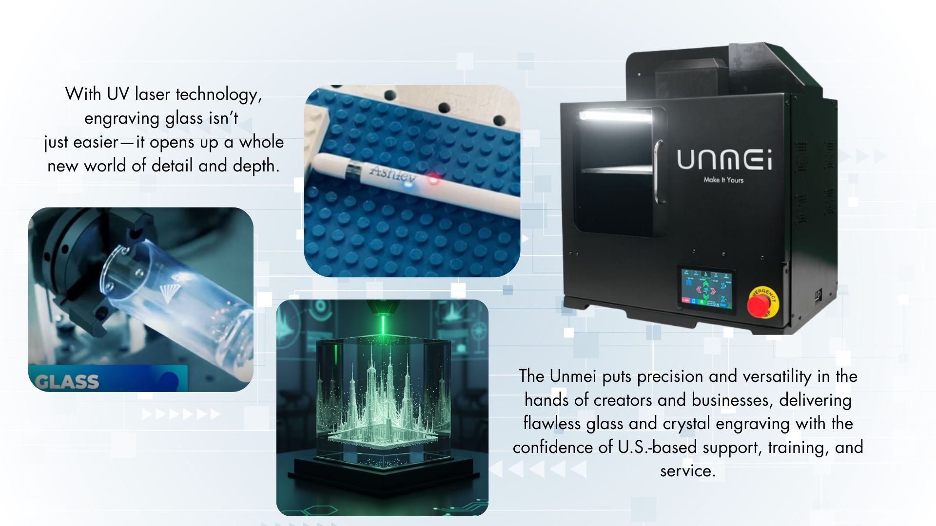 The UNMEI UV laser earns its place on my favorites list because it takes UV engraving to the next level. This is the machine I think of when I need absolute precision, repeatability, and advanced features that simplify complex work.